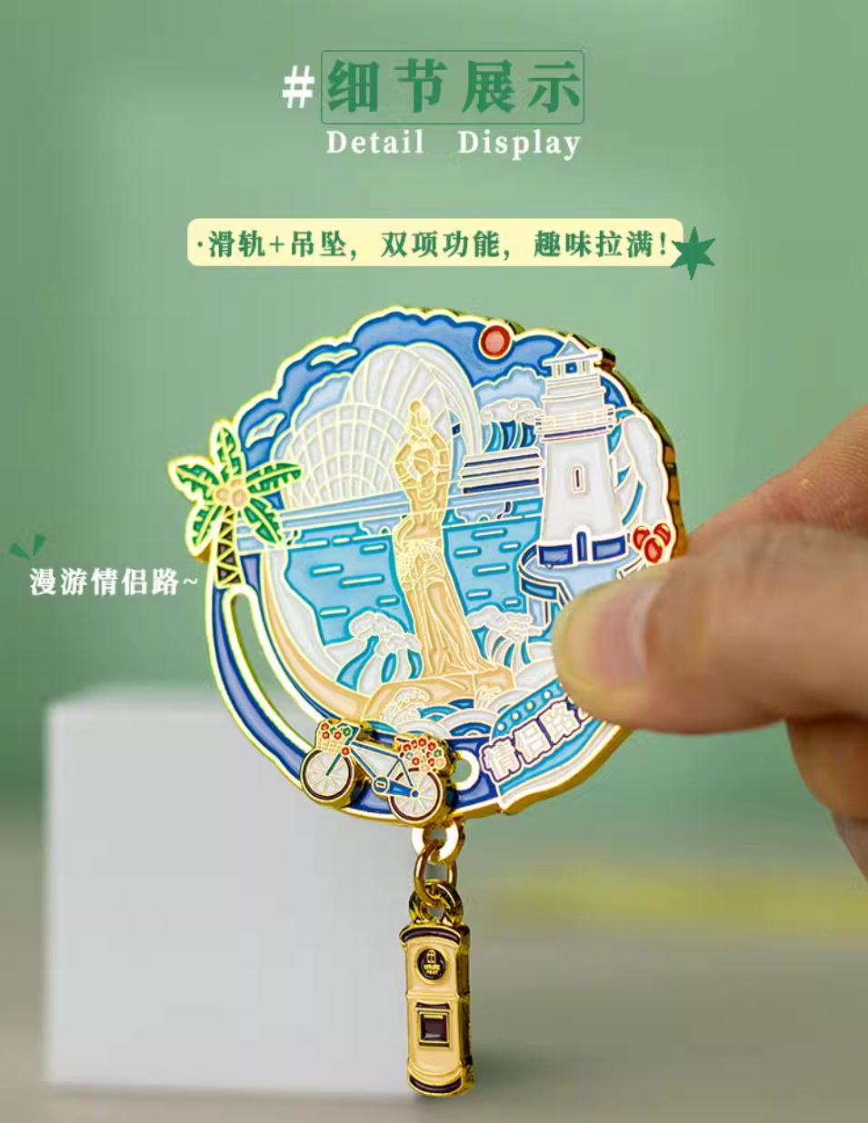 广东旅游周边文创纪念品金属磁性冰箱贴滑动吊坠款-情侣路